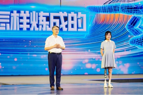 “钢腿女孩”牛钰与电子科技大学机器人研究中心主任、电子科技大学机器人研究中心主任程洪则共同讲述《新·钢铁是怎样练成的》