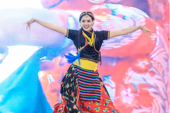 活动现场,塔吉克斯坦、印尼、尼泊尔、古巴、秘鲁等国家带来了本国特色的民族服饰展示、独唱、舞蹈等精彩表演,展示了百花齐放的文化魅力,更增进了各国间的了解。