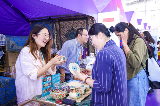无论是主舞台的特色演出、“炫彩之旅”的推介环节,还是各国展陈空间的特色美食和乐器展示、炫彩风物馆的系列IP文创产品,以及护照盖章打卡、丝路福袋兑换、丝路邮局等互动活动,都营造了轻松活泼的氛围,促进了民心相通相亲,更为世界增添炫彩魅力。