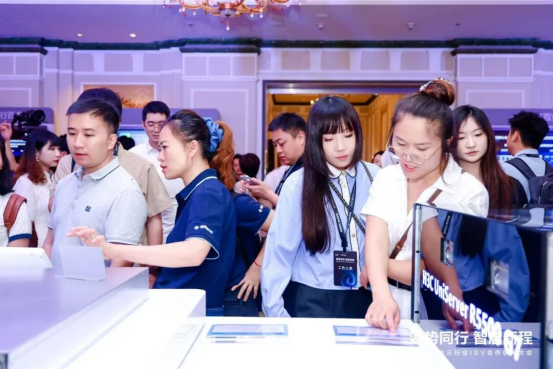 在活动展区,与会嘉宾们深入了解新华三在AI及智算领域的前瞻洞察和行业实践成果,包括灵犀智算解决方案、傲飞算力平台、灵犀使能平台、H3C绿洲平台、以及与多家ISV联合打造的AI×百行百业解决方案等,为后续的战略分享与合作交流奠定了基础。