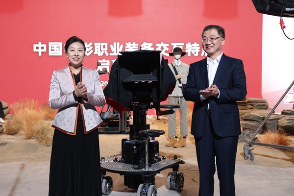 际华集团党委书记、董事长王学柱,北京电影学院党委书记周志军共同为中国电影职业装备交互特展启幕