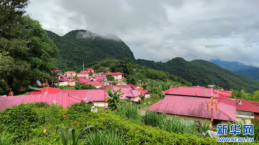 远眺勐董镇龙乃村上龙乃自然村(8月8日摄)。新华网发(韩文萍 摄)