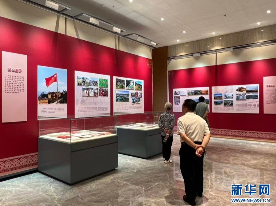 红河书院内,游人正在观展(8月6日摄)。新华网发(杨桢宇 摄)
