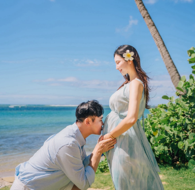 此外,许多孕期蜜月旅行的夫妻会提前预约,拍摄孕肚写真。在韩国旅行平台上,有许多海外摄影团队提供面向韩国旅客的“快拍摄影”服务,如今也特别针对孕期蜜月的夫妻推出套餐。例如夏威夷的一家摄影工作室提供孕妇礼服租借,还有倒数预产期的小道具。有的大型旅行社也会在东南亚提供户外孕肚拍摄,由当地摄影师在景点捕捉孕肚美照。