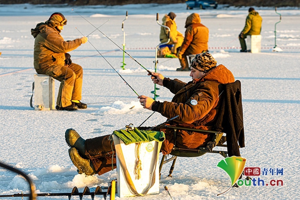 俄罗斯符拉迪沃斯托克:民众体验冰钓乐趣
