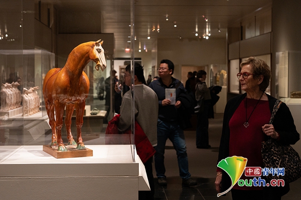 当地时间2月26日,美国纽约大都会博物馆,观众参观“唐 褐釉陶马”。为庆祝马年,大都会艺术博物馆推出《喜迎马年》特展,展览汇集陶瓷、玻璃、玉器、金属制品和木版画等馆藏文物。展期从2026年2月持续到2027年1月。 中新社记者 廖攀 摄