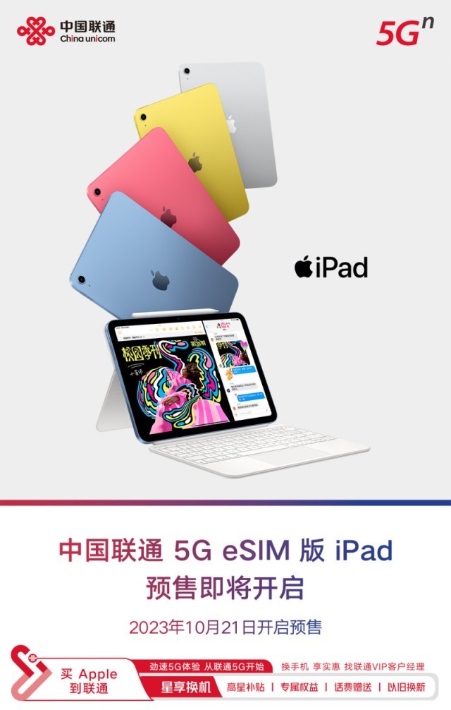 10月17日,苹果更新了第十代iPad无线局域网+蜂窝网络机型,eSIM技术加持成为发布会最大亮点,意味着用户无需实体SIM卡,简单设置即可畅享便捷5G网络连接。中国联通作为当前中国大陆唯一支持笔记本和平板类产品办理eSIM业务服务的运营商,为广大用户提供了完美的iPad+5G+eSIM的网络互联方式,既是国内移动设备市场的一次重大突破,更是迈向更便捷、灵活网络连接的重要一步。通过推广eSIM技术,满足用户对高速互联网的需求,推动数字化应用的发展,彰显了中国联通在网络互联领域的前瞻性和领先地位。