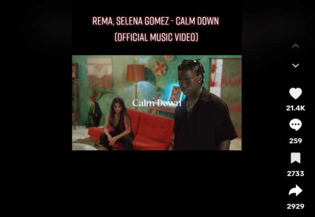 泰拉并非孤例,尼日利亚说唱歌手雷马(Rema)同样是通过TikTok取得成功的非洲音乐家之一。他与赛琳娜·戈麦斯 (Selena Gomez) 合作重新混音了自己的歌曲《Calm Down》,该歌曲在 Billboard百强榜中排名第三,并在去年 9 月的 MTV 视频音乐奖中荣膺最佳非洲节奏奖。
