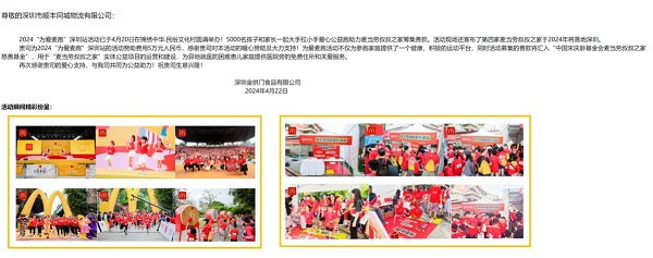 不仅通过定制化的高品质即配服务为消费者带来更好的体验,顺丰同城也一直主动担负社会责任与公益事业,致力于让配送有“速度”更有“温度”。此次顺丰同城对“为爱麦跑”的爱心支持,也正是顺丰同城和麦当劳在以“客户为先”的优质服务理念之外,共同实现公益助力,对美好社会价值创造的又一次“双向奔赴”。