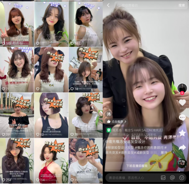 安迪说,当下做美发生意,必须“搞互联网”。新店开业期间,她去了好几次概念连锁店的总部,专门学习如何借助“短视频+直播”在抖音有效地引流获客。