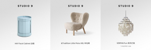 作为丹麦设计美学的集大成者,STUDIO 9旗下三大品牌各具传奇色彩。HAY 秉承“包容性设计”的初心,回应现代生活的持续演进的需求,其 Facet Cabinet 储物柜融合功能性与设计美感,以灵活的设计与多元的配色适应不同空间的收纳需求;&Tradition将优雅设计与卓越工艺结合,其标志性羊毛椅 Little Petra体现了设计师 Boesen 柔和、有机、而近乎天真的设计方法,富有表现力的设计语言流畅地融合使用者的感受,带来内在抚慰;而以颠覆趣味著称的VERPAN,其Fun系列吊灯由一系列圆形贝母串连,白色贝壳层层包裹,将光线以趣味横生的层叠方式漫射,为空间增添艺术气息。