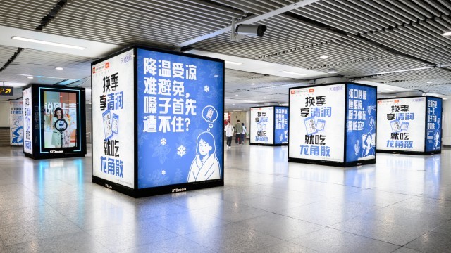 近日,不少上海与北京市民发现,在地铁的广告屏上,一抹清新的视觉广告悄然出现:经典蓝白配色的龙角散产品与换季咽喉健康护理的主题提示相互映衬,吸引着往来通勤人群的目光。这一系列广告覆盖了上海与北京市内多条轨道交通站点,同时品牌还在上海举行了“好声音补给站”清润快闪活动与全城清润巴士巡游活动,旨在通过高频次的场景触达,唤起公众对换季时节咽喉健康的关注。